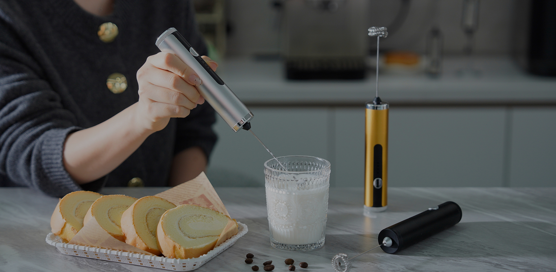 电动奶泡器旨在通过内置搅拌棒或蒸汽喷口,快速高效地将牛奶打成绵密奶泡。该过程迅速将空气注入牛奶,形成细腻微小的气泡,从而制作出如丝绸般顺滑、柔软的奶泡,非常适合用来点缀各类饮品。